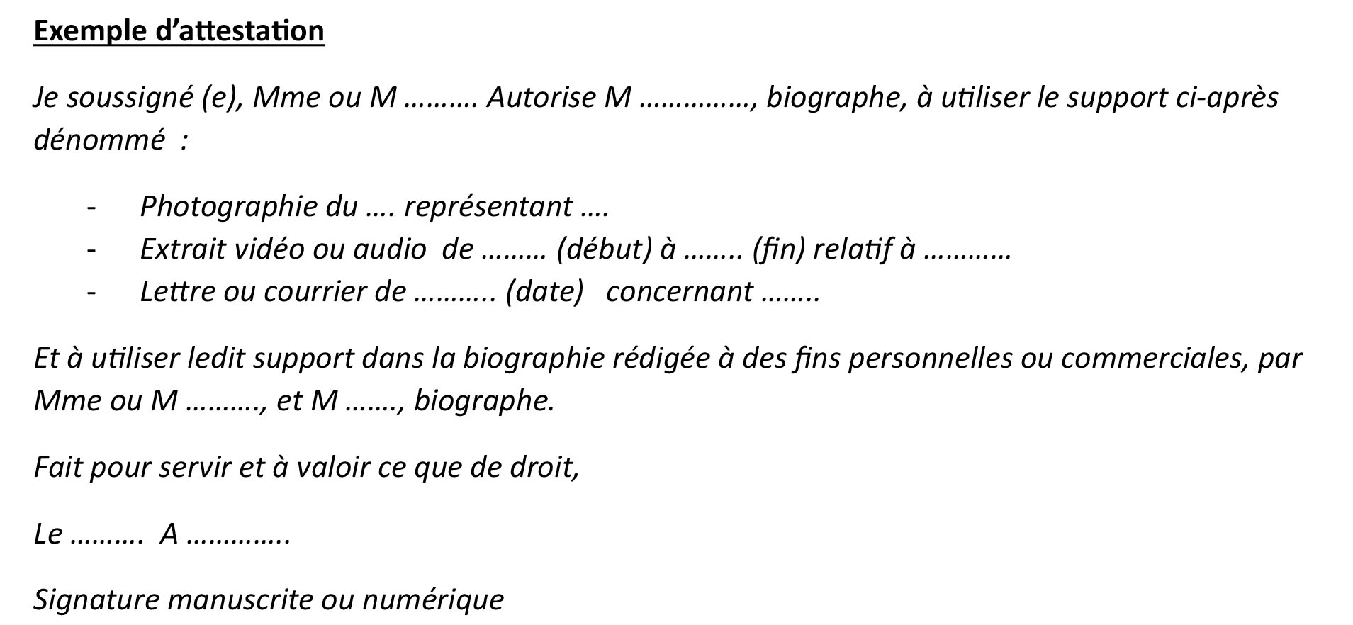 Une autorisation préalable du propriétaire quant à l’utilisation de ses ressources s’avèrera indispensable. Conservée avec les archives du texte rédigé, elle servira de preuve et de justificatif en cas de litiges. Une simple attestation suffit.